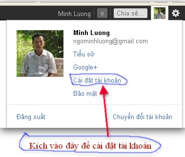 Đầu tiên các vị hãy đăng nhập vào tài khoản Google của mình (không phải là tài khoản Gmail, mặc dầu 2 tài khoản này thường trùng nhau). Khi đăng nhập vào tài khoản Google các vị có thể vào Gmail, Blog và các dịch vụ khác mà